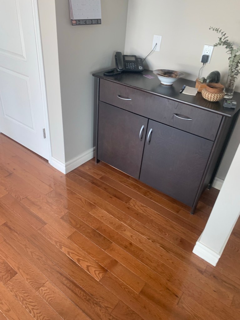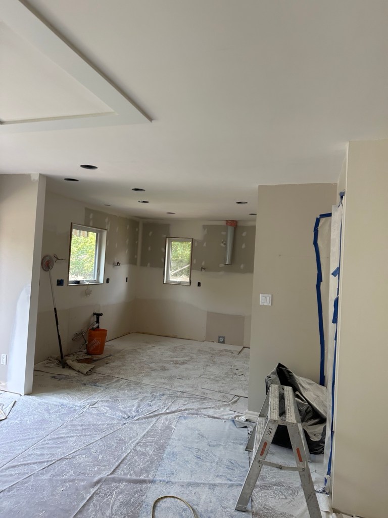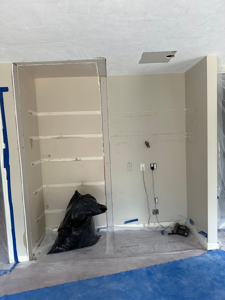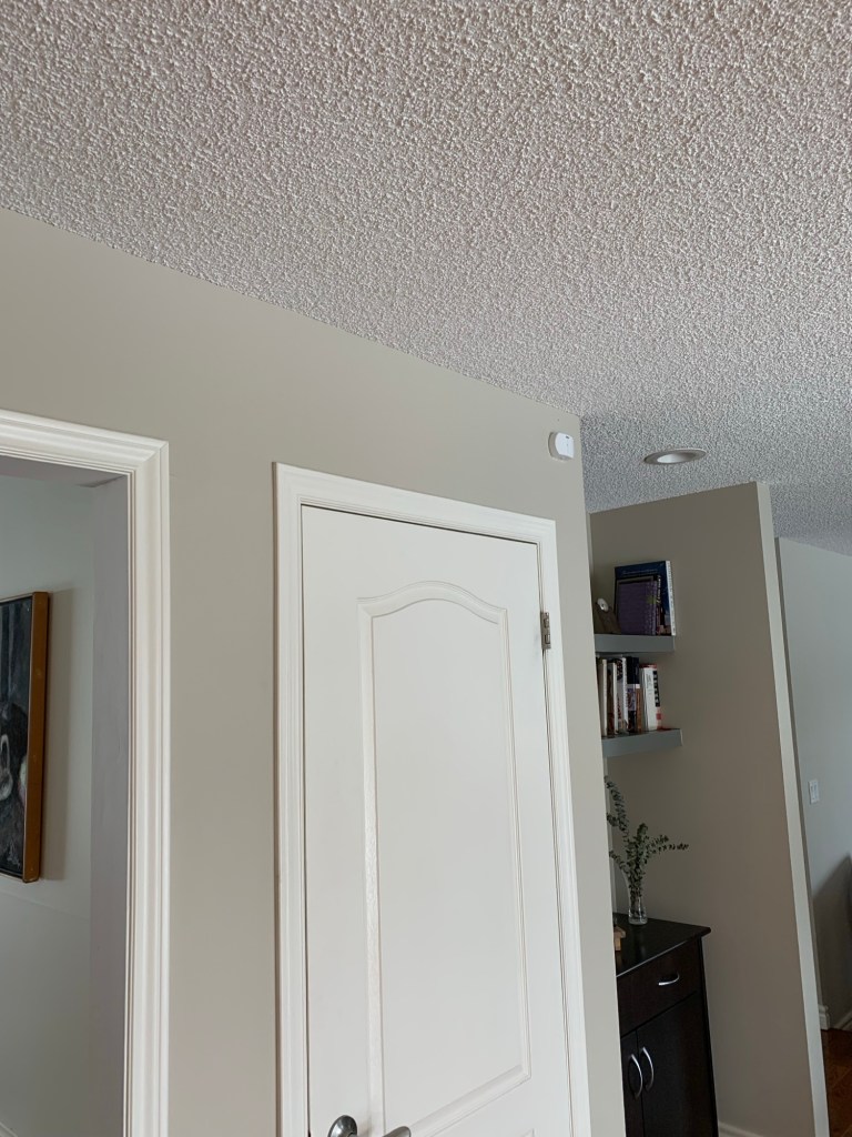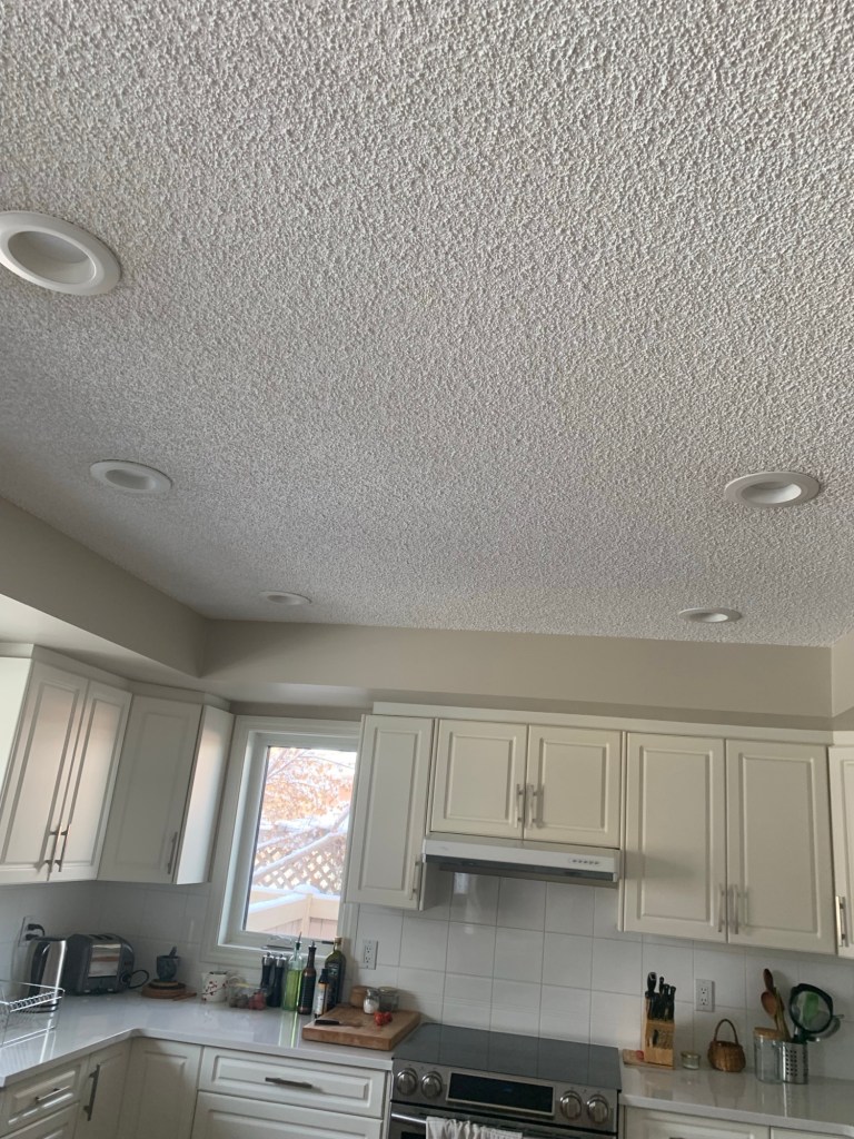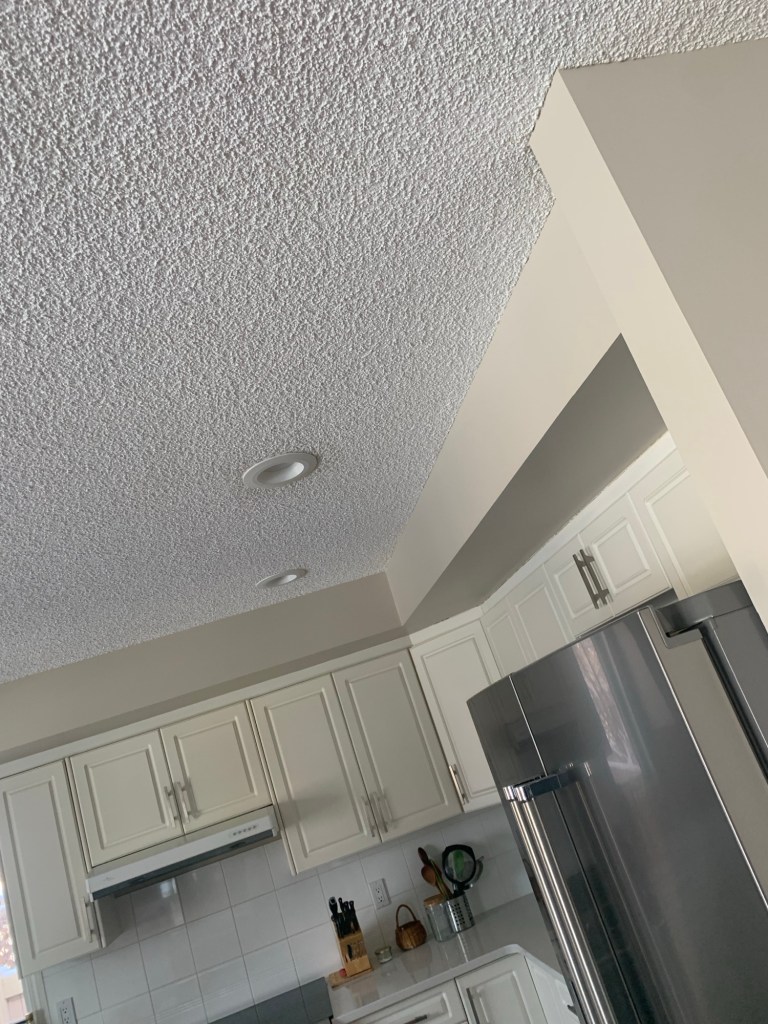 This project in the heart of Edmonton’s Henderson Estates community called for removal of the 1990’s styled bulkheads framed down to fill the void on top of the existing builder cabinets. Consequent repair, blending and repainting of the attached living room ceiling including construction of a faux bulkhead to demarcate an adjoining hallway was required, all while retaining not only the as is condition of the continuous engineered hardwood flooring but also our client’s existing quartz countertops and stainless steel apron sink.
