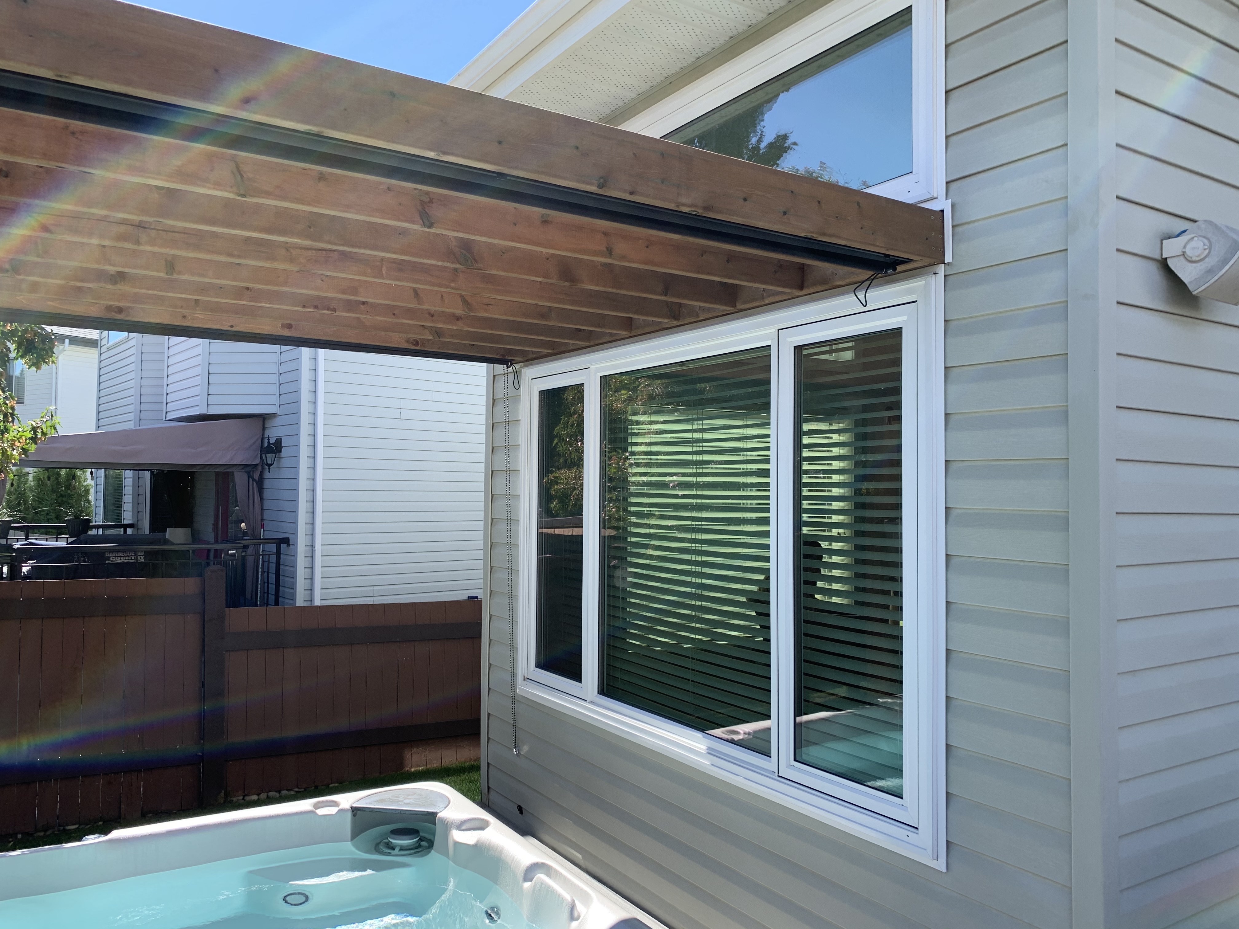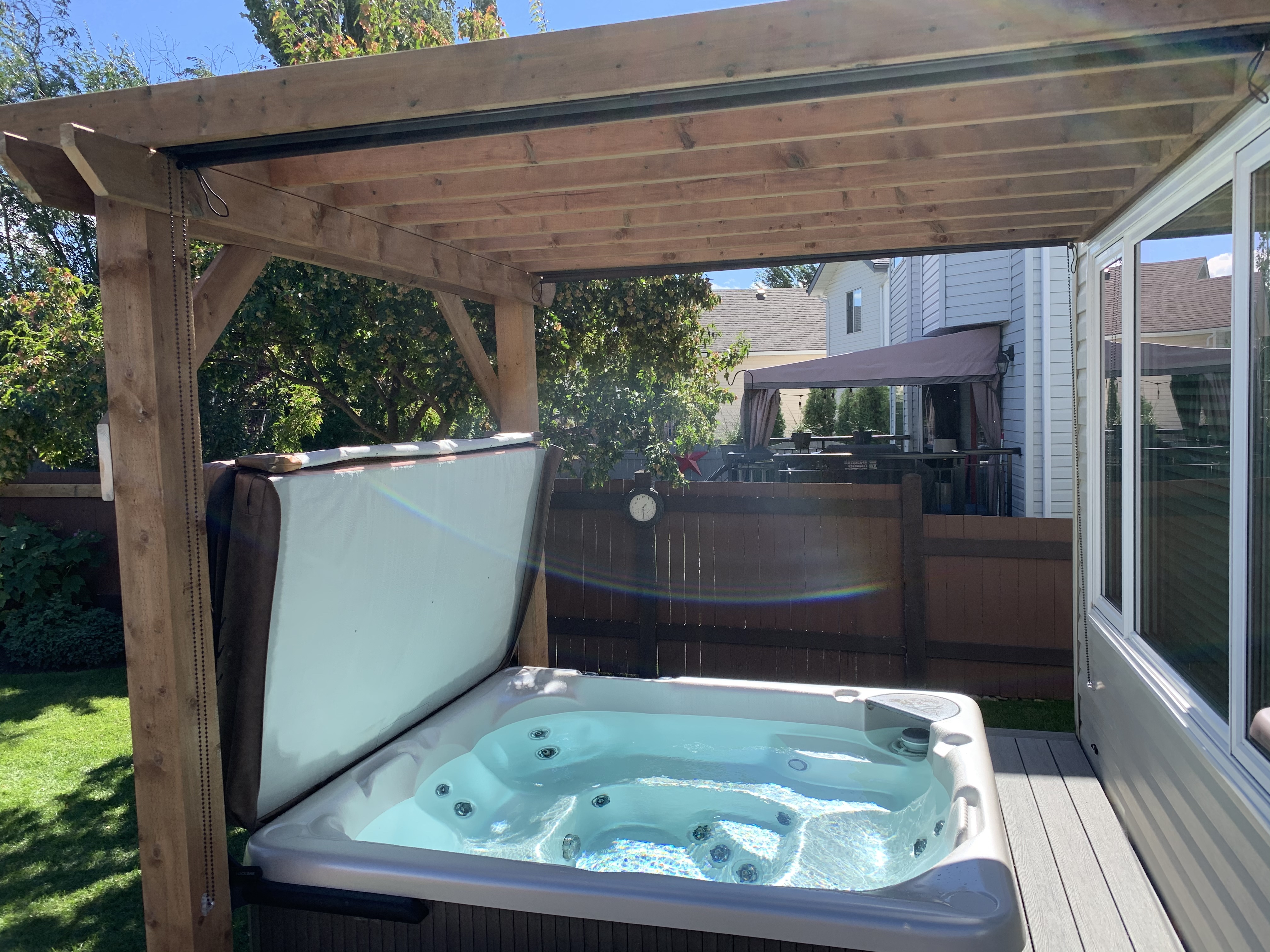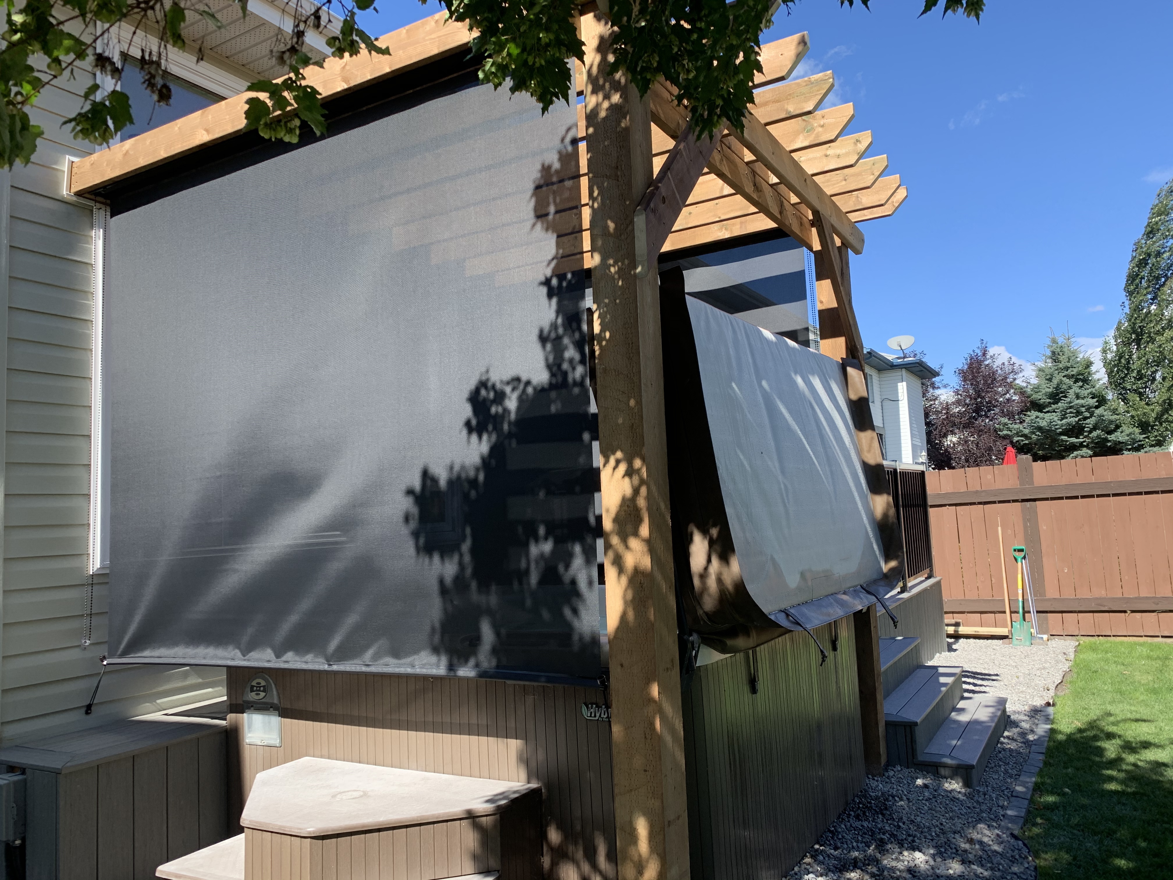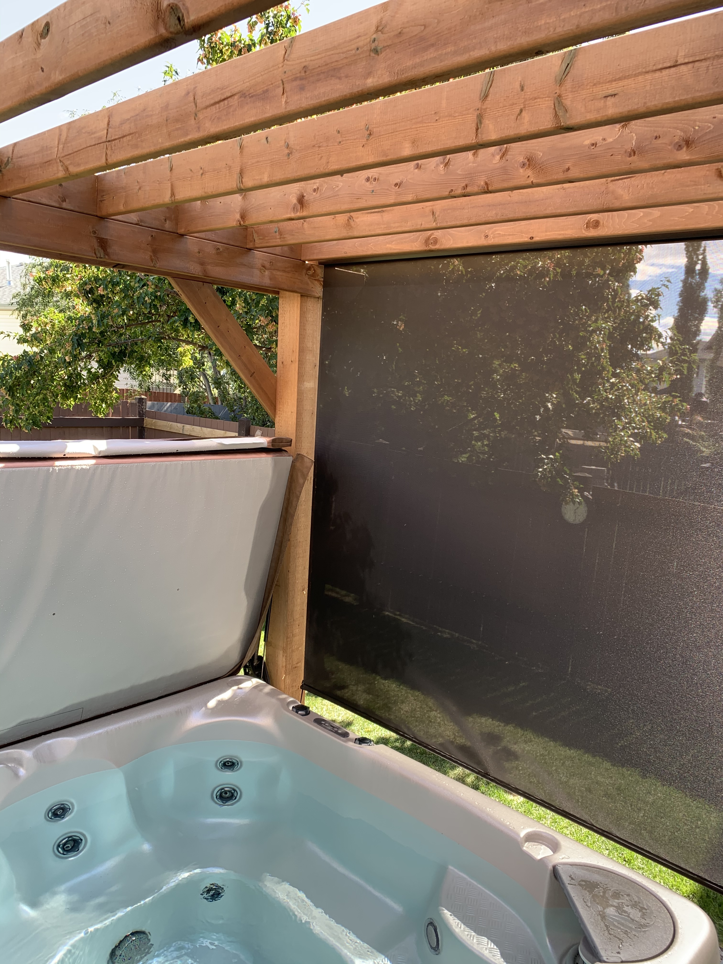 - Integrated hot tub roll down privacy screen