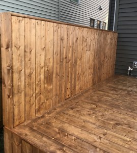 Straight forward. Inviting and functional. This pressure treated ‘Sienna Brown’ finish, vertically skirted deck with privacy wall & LED lit staircase compliments a newly constructed client home in the Hawk’s Ridge area of Edmonton.